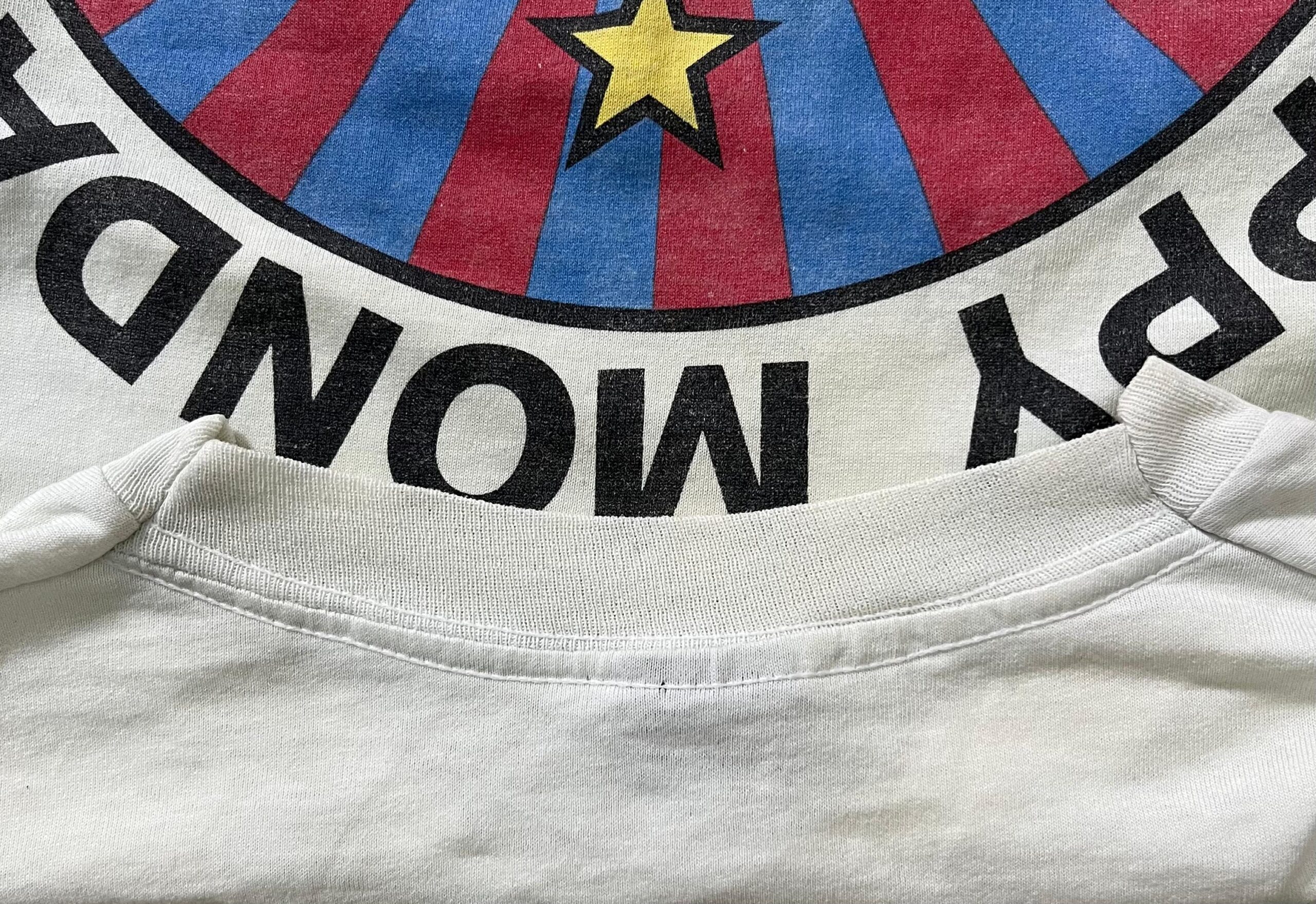 The vintage Happy Mondays “Call the Cops” shirt is a piece of memorabilia from a pivotal moment in the band’s career and the history of the “Madchester” music scene. This shirt likely dates back to their 1990 U.S. tour, which was in support of their massively successful album, “Pills ‘n’ Thrills and Bellyaches.” The album was a commercial and critical high point, solidifying their place alongside bands like The Stone Roses as pioneers of a sound that blended rock, funk, and acid house. The phrase “Call the Cops” on the shirt is a nod to the band’s notoriously wild and chaotic reputation, a reputation that was further cemented by their off-stage antics and drug-fueled behavior. The colorful, stylized design of the shirt, with its circular motif and vibrant flames, reflects the psychedelic and rave culture that was central to their music and image. For fans, this shirt represents a time when the Happy Mondays were at their peak, exporting the “Madchester” sound to America and living a lifestyle that was as legendary as their music.