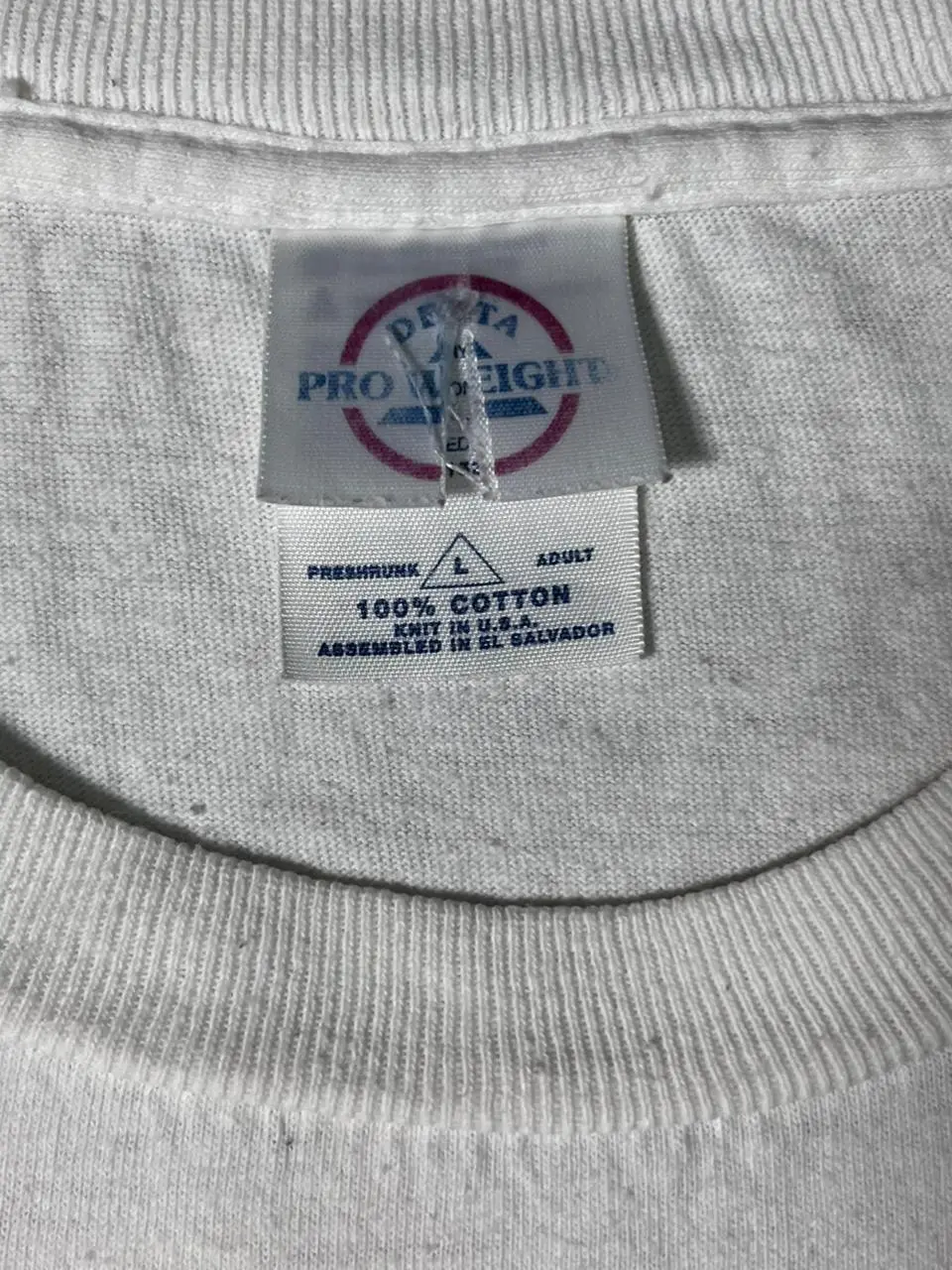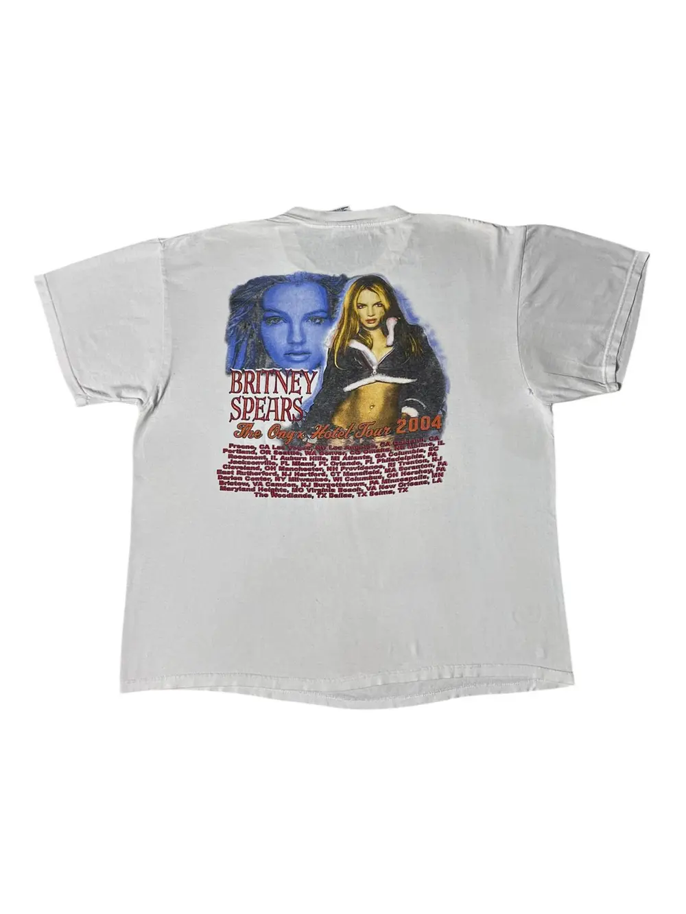 This vintage Britney Spears shirt is a quintessential artifact from The Onyx Hotel Tour in 2004, a high-concept, Broadway-inspired production that promoted her In the Zone album. The tour was a significant turning point in Spears’ career as promoters shifted their marketing strategy from her younger “teenybopper” fans toward a more mature, adult demographic. The shirt features the official tour logo and photography that captured this “grown-up” aesthetic, which Spears later revealed in her memoir felt like a forced return to work following her high-profile breakup with Justin Timberlake.