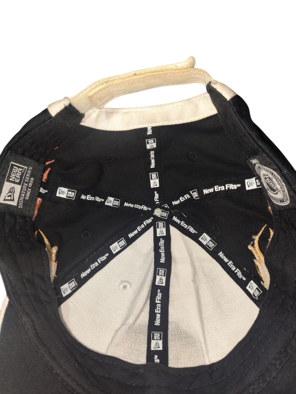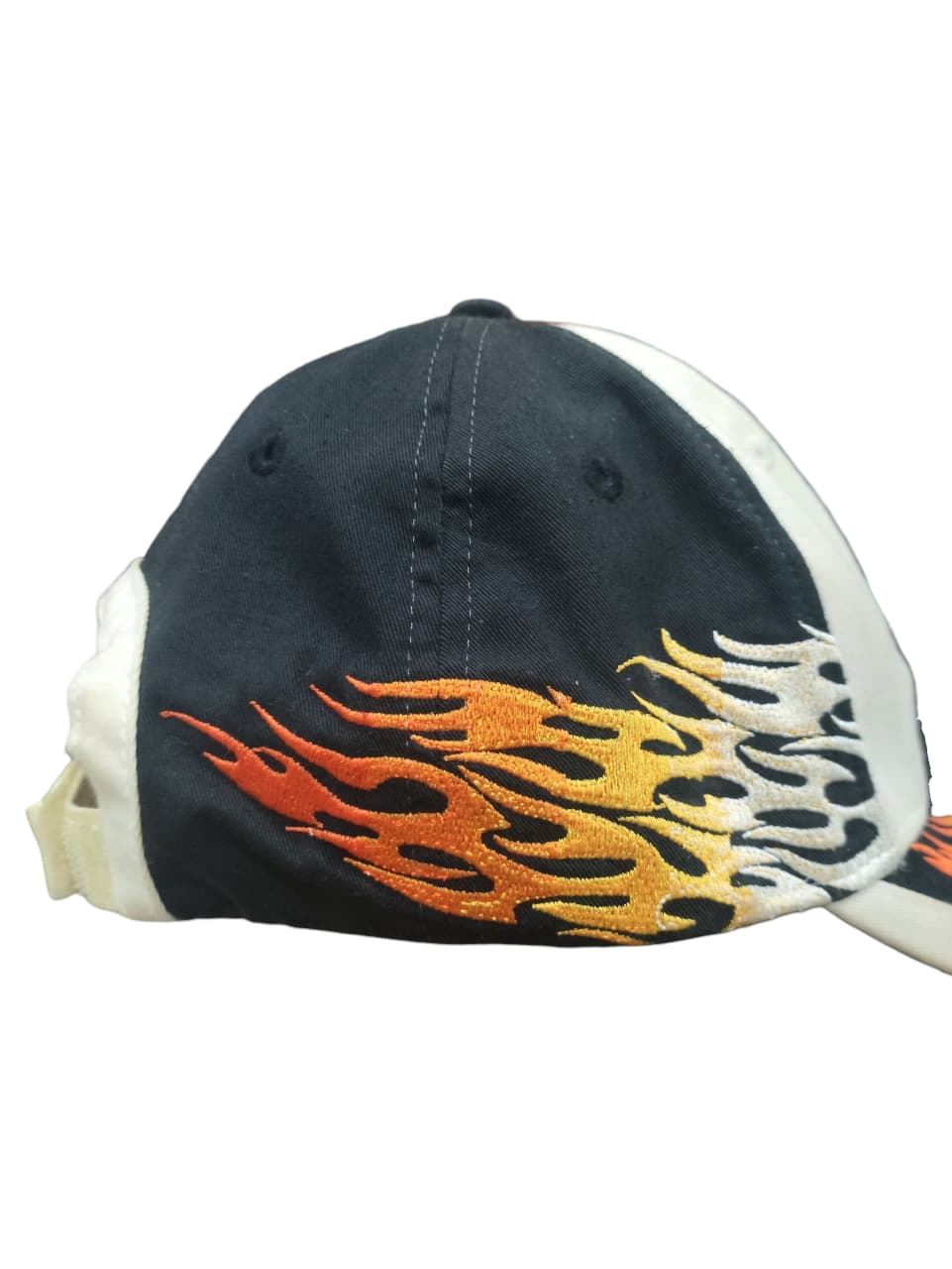 The Vintage Chicago Blackhawks Flame Cap is a nostalgic piece of sports apparel that embodies a specific era of fan fashion. During the 1990s and early 2000s, flame designs were extremely popular in various forms, from clothing to automotive decals. This cap merges that popular trend with the classic Chicago Blackhawks logo, creating a unique and visually striking item. The cap’s design features the iconic Native American head logo embroidered on a white and black background, with stylized flames running along the brim and sides. It represents a period when sports teams and apparel manufacturers experimented with bold, often unconventional designs to appeal to a younger, more fashion-conscious fanbase. Today, this cap is considered a vintage collector’s item, cherished by fans who remember the era and appreciate the distinctive blend of sports tradition and early 2000s street style.