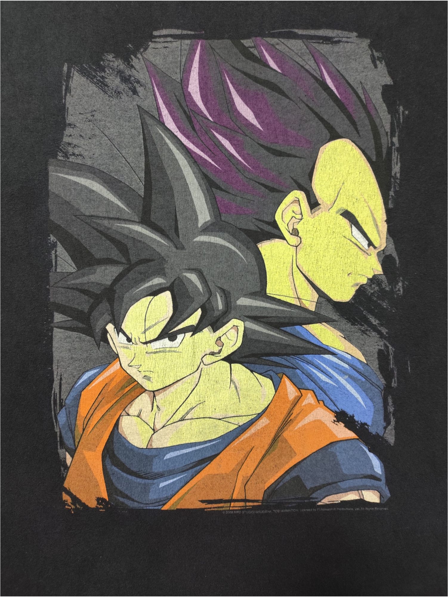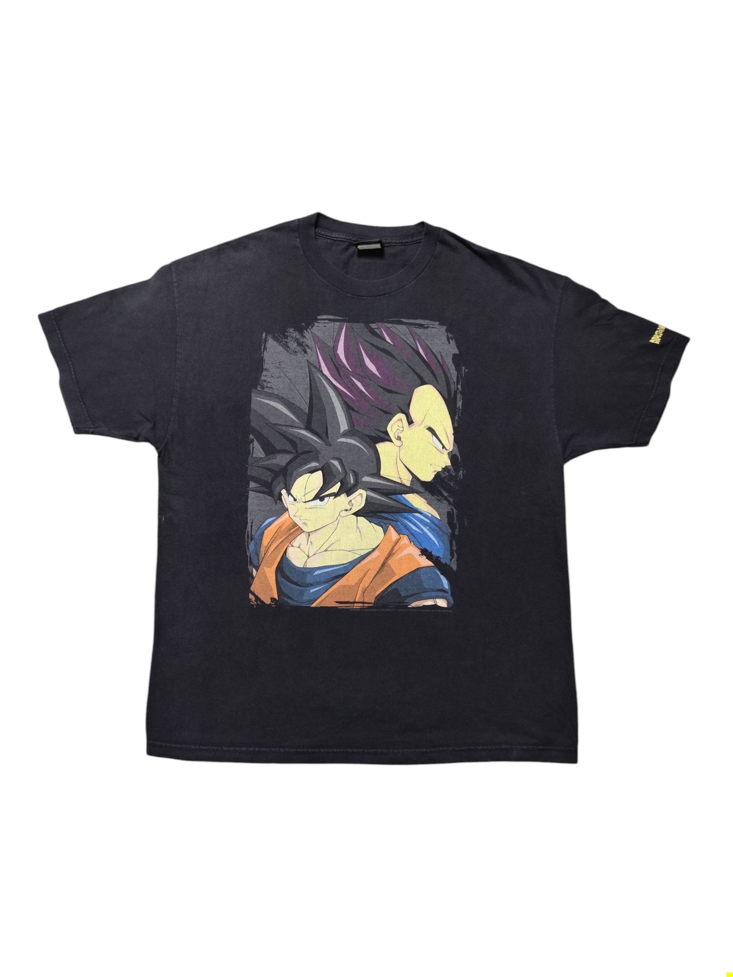 This vintage Dragon Ball Z T-shirt celebrates the enduring rivalry and dynamic partnership between Goku and Vegeta, two of the most iconic characters from the highly popular Japanese anime and manga series. Dragon Ball Z, which aired from 1989 to 1996, propelled the Dragon Ball franchise to international fame, captivating audiences with its intense martial arts battles, escalating power levels, and intricate storylines revolving around Goku and his allies defending Earth and the universe from increasingly powerful threats. The shirt’s depiction of both Goku and Vegeta, often seen in various states of their Super Saiyan transformations, highlights their shared journey from bitter enemies to reluctant allies and, eventually, a complex friendship, making them central figures in the series’ epic sagas and a symbol of its lasting appeal to fans worldwide.