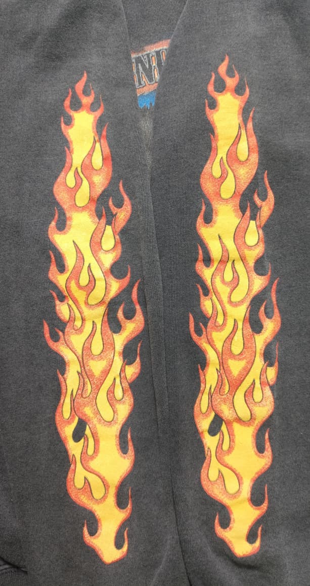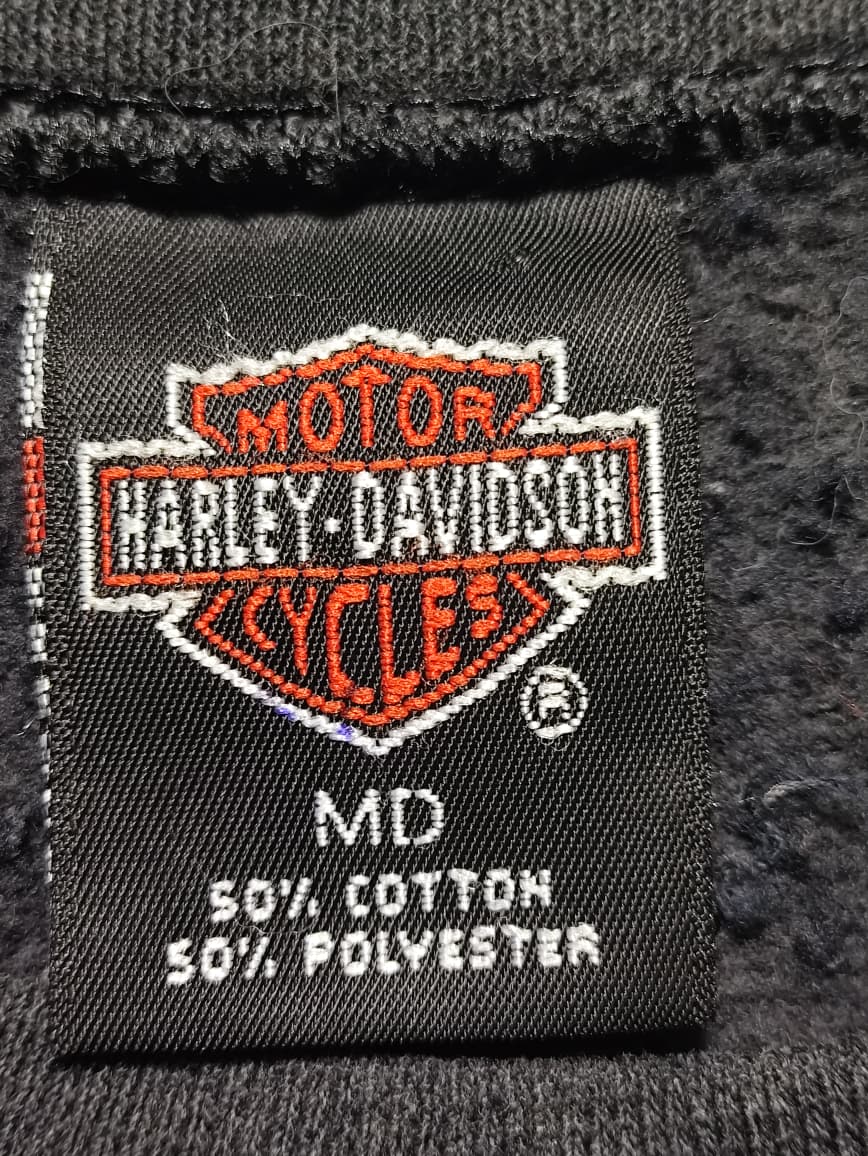This vintage Harley-Davidson sweater, featuring a fierce wolf engulfed in flames with the phrase “NO BOUNDARIES” above, embodies the untamed and independent spirit synonymous with the Harley-Davidson lifestyle. Unlike a typical t-shirt, a sweater suggests a heavier, perhaps cooler-weather garment, aligning with the rugged image of bikers who ride in all conditions. The wolf motif, often symbolizing loyalty, strength, and wildness, perfectly complements the “No Boundaries” slogan, reinforcing the idea of freedom, adventure, and pushing limits that Harley-Davidson riders embrace. This particular design serves as a powerful statement piece, appealing to those who connect with the raw, rebellious essence of the brand and its iconic imagery.