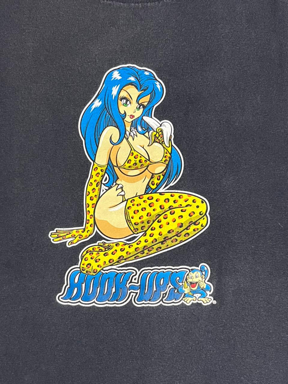 This rare vintage 1990s Hook-Ups “Cheetah Girl” shirt is a definitive example of the provocative, anime-inspired aesthetic that revolutionized skateboard culture in the mid-90s. Created by professional skater Jeremy Klein in 1993, Hook-Ups became a cult phenomenon by blending the rebellious spirit of skating with stylized Japanese animation, which at the time was a niche interest largely overlooked by the mainstream. This specific graphic, often referred to as the “Beautiful Cheetah Banana Girl,” features an original 90s anime design that characterizes the brand’s penchant for playful yet controversial imagery. While early Hook-Ups designs were often “guerrilla-style” re-drawings of established manga characters, they paved the way for the “corporate-meets-counterculture” streetwear movement and remain highly prized by collectors for their role in bringing Japanese pop culture to the American skate scene.