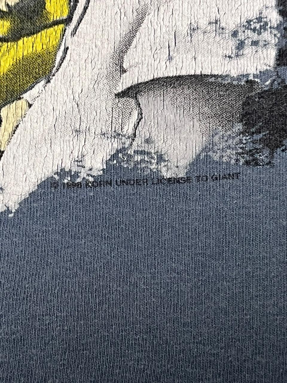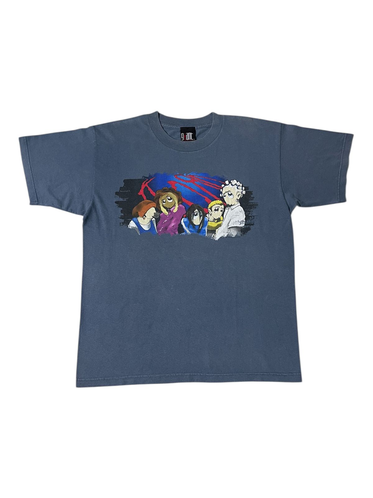 This vintage 1998 Korn t-shirt is a highly coveted piece of nu-metal history, released during the height of the band’s global breakthrough with their third studio album, Follow the Leader. The front graphic features a rare, stylized anime or cartoon depiction of the original band members—Jonathan Davis, Munky, Head, Fieldy, and David Silveria—which was a popular aesthetic for the band’s merchandise during this era. Printed on an authentic Giant tag, which was the primary licensed manufacturer for high-end band merch in the late ’90s, the shirt represents the period when Korn catapulted nu-metal into the mainstream. This specific “Follow the Leader” era is iconic not only for its five-times Platinum success and MTV hits like “Freak on a Leash,” but also for the band’s groundbreaking 1998 Family Values Tour, which solidified their status as titans of the genre.