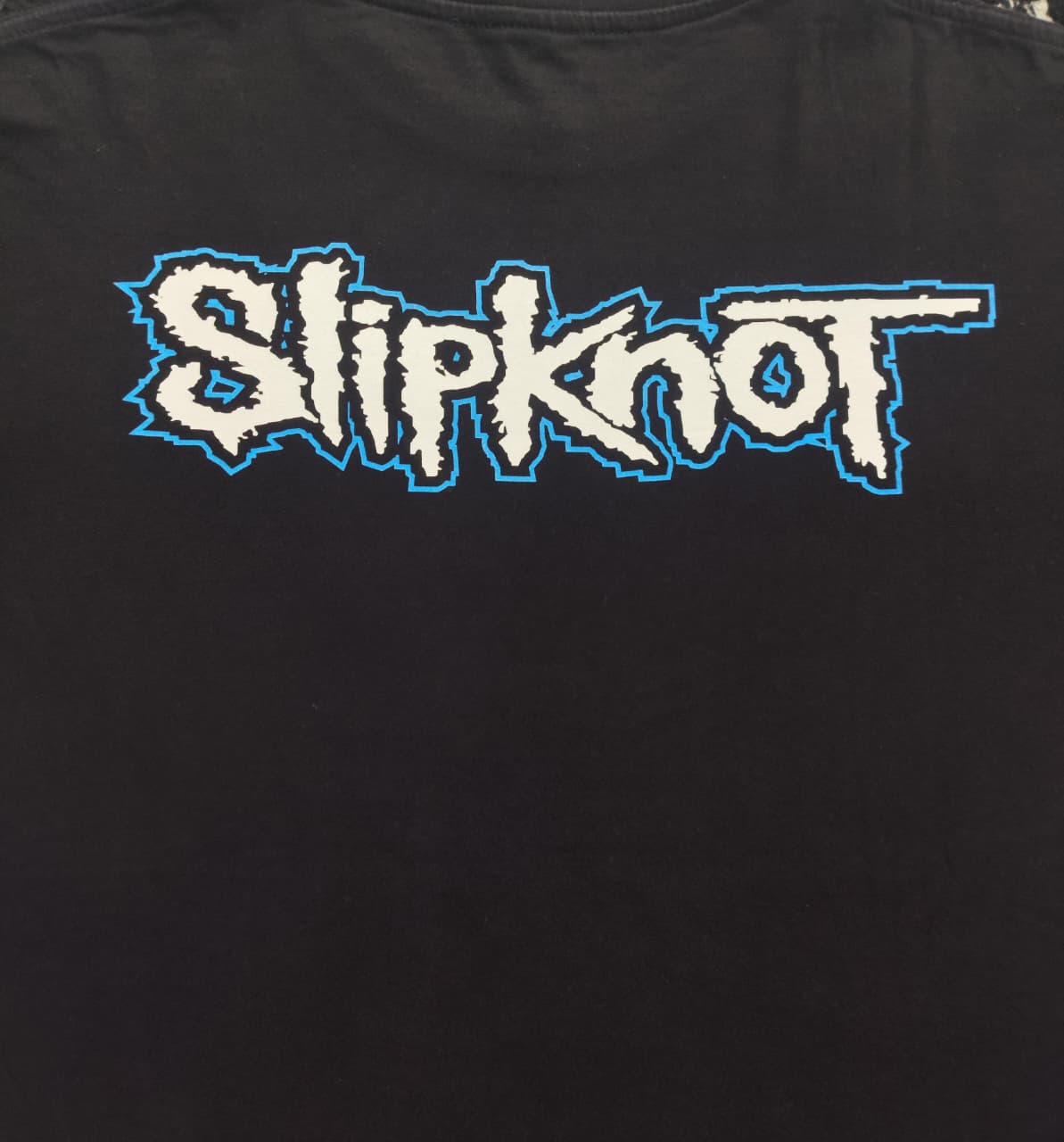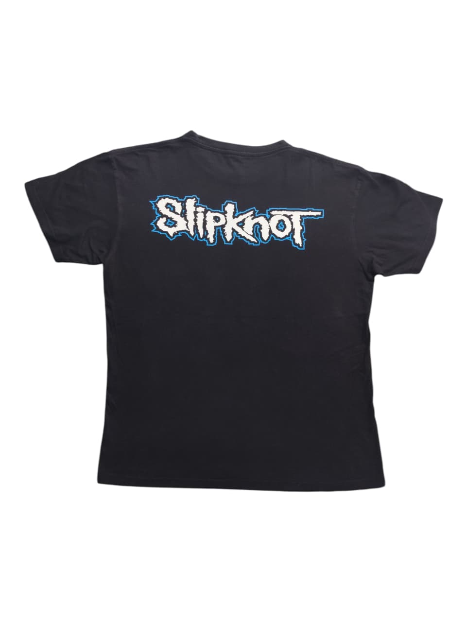 This vintage Slipknot T-shirt is a powerful piece of metal history, commemorating their seminal 2001 album, “Iowa.” The front of the shirt features a haunting, monochromatic image of two band members in their signature masks, with the album title “IOWA” and the band’s name printed below in a stark, distressed font. “Iowa” is widely regarded as one of the darkest and most aggressive albums in Slipknot’s discography, reflecting a turbulent period for the band and the intense pressure they were under following the success of their debut. The shirt’s design captures the raw, chaotic energy of the album, making it more than just a piece of merchandise but a symbol of a pivotal moment in the history of nu-metal and an essential item for any dedicated fan of the band’s early, more visceral work.